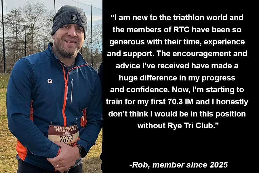 Founded in 2006 Rye Tri Club is a fun, inclusive community where athletes of all levels—from the beginner to seasoned competitors—train, learn, and grow together. We connect with our local community and donate a large proportion of our funds to local charities, making every race and workout purposeful.